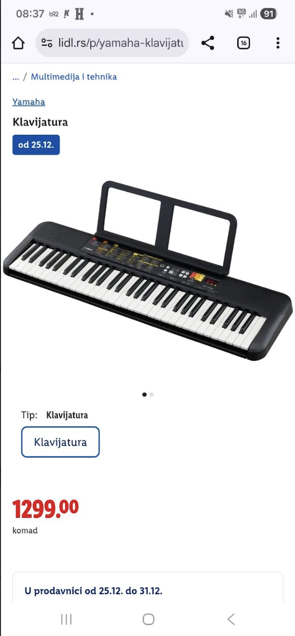 Kupci koji su jutros 25. 12. 2025. posetili Lidlove prodavnice na Vidikovcu (Kneza Višeslava 61v) i Trošarinu (Save Maškovića 4) zatekli su značajnu razliku između promotivne i stvarne cene klavijature.