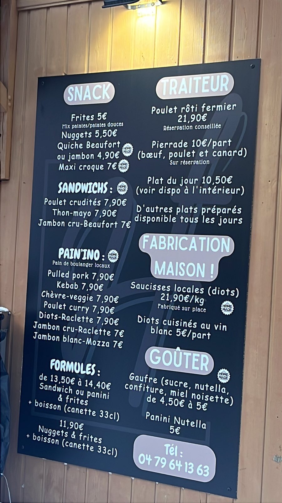 Pečeno domaće pile, koje bi trebalo rezervisati unapred plaća se 21,90 €, dok Pierrade, specijalitet od mesa na vrućem kamenu - govedina, piletina, patka, košta 10 € po osobi. Ko se odluči za jelo dana platiće ga 10,50 €.
