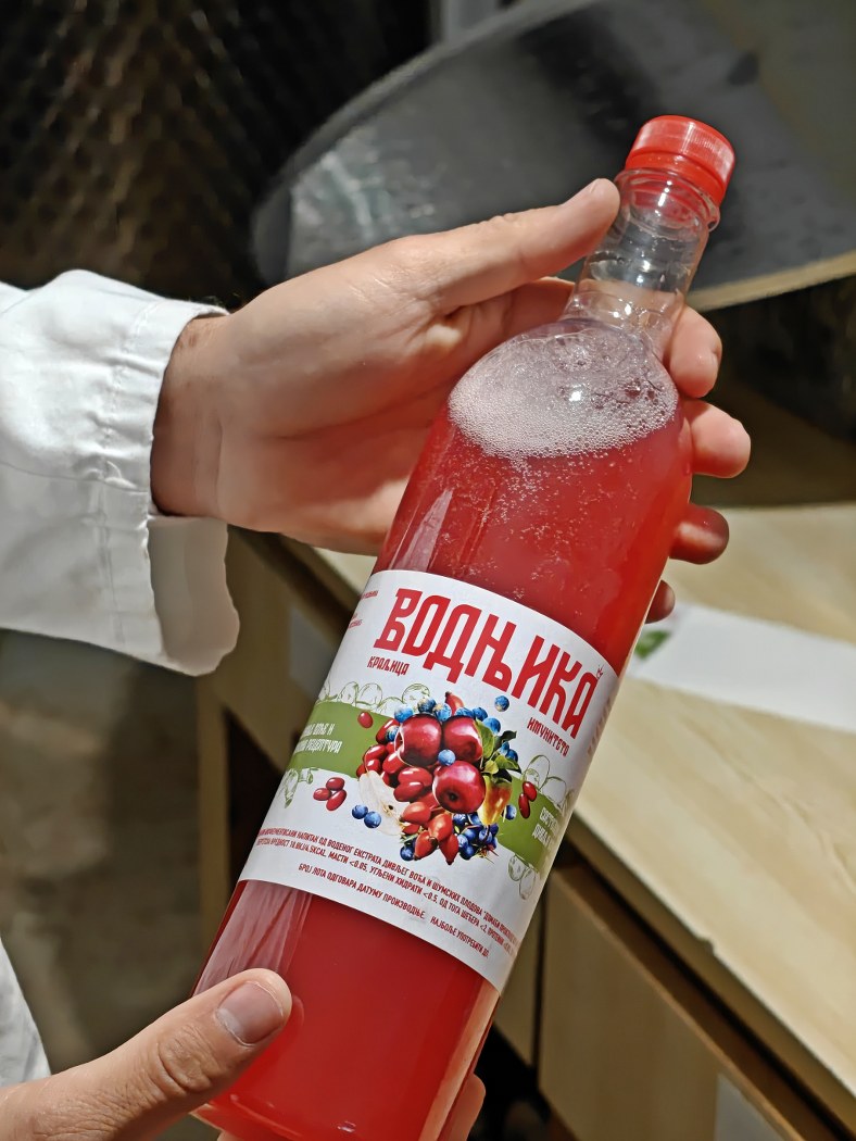 - Vodnjika se pravi od sedam vrsta divljeg voća. To su: divlja jabuka, divlja kruška, trnjina, glog, dren, šipurak i kleka. Sve to se pomeša, ubaci u bure i nalije obavezno izvorskom vodom.Nema dodatog šećera, aditiva, konzervanasa, već samo lekovitih gorkih kiselina i materija koje divlje voće ispušta. Kada voće odleži određen period u buretu, sledi ceđenje i sipanje u flaše - kaže Predrag.
